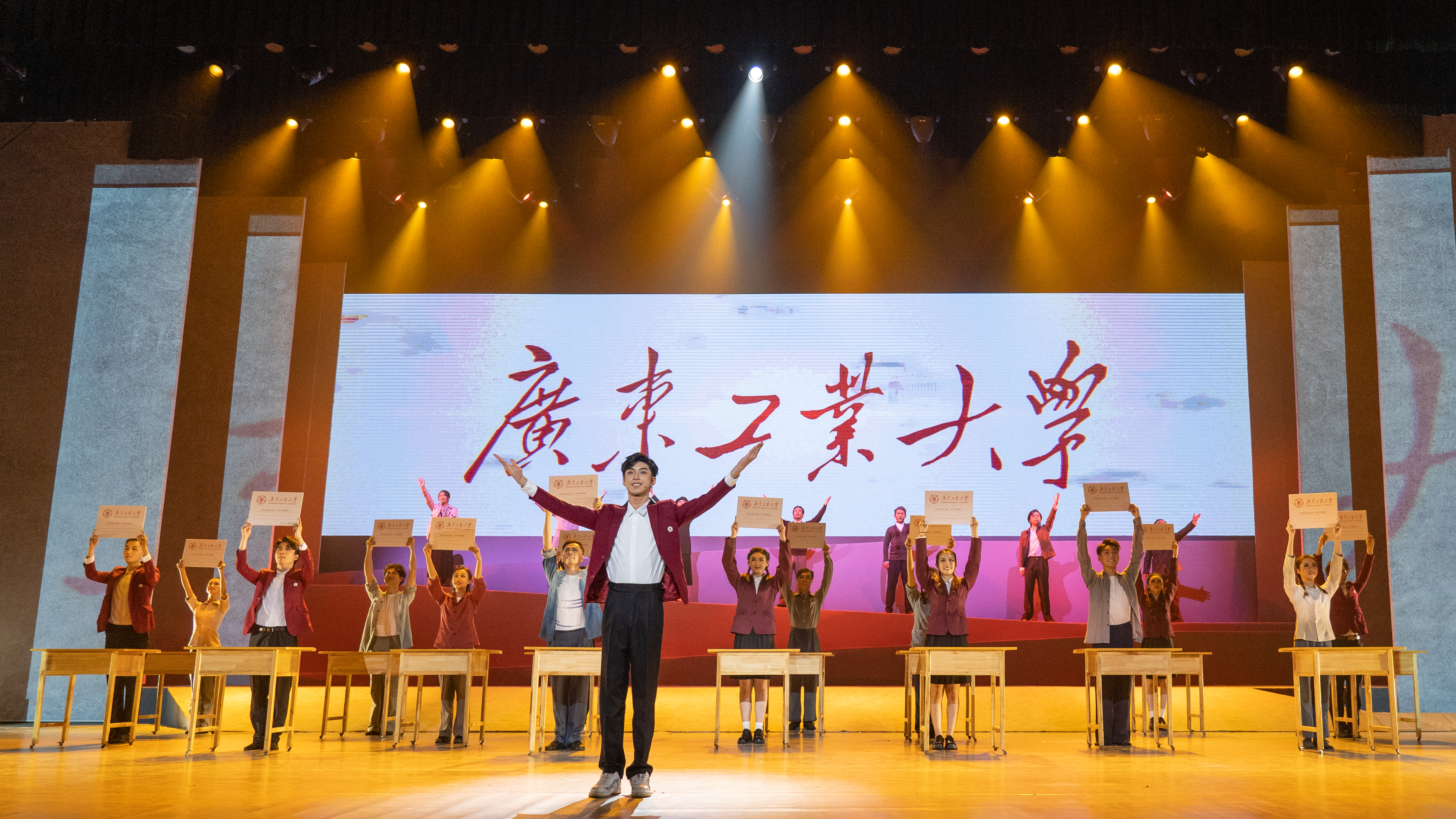 广东省首部由在校师生原创的大型情景史诗剧;广东省首次用舞台剧的形式讲述东深供水工程的历史故事;广东省高校首次以“时代楷模”精神传承为主题在校园展示——编剧成慧慧、总导演郑萌用三个“首”字概括了《青春印丰碑》的创新性。剧目筹备与创作历时7个多月,汇聚了学校舞蹈团、戏剧团、合唱团、交响管乐团、人声乐团、语言艺术团等高水平艺术团的200多名师生共同参演。
