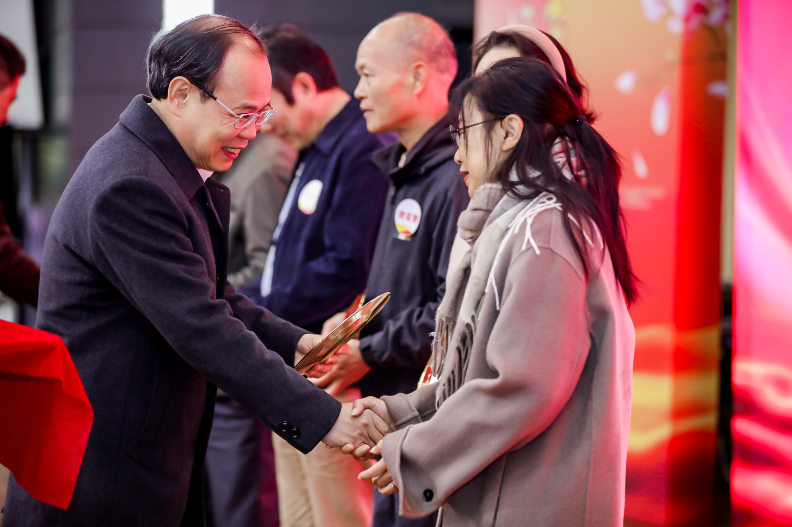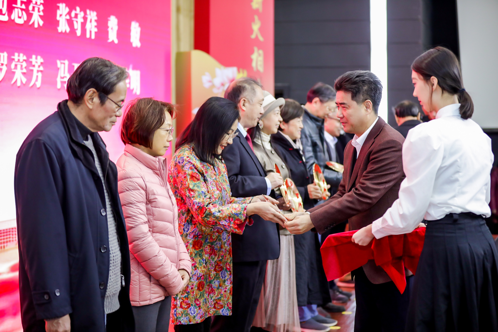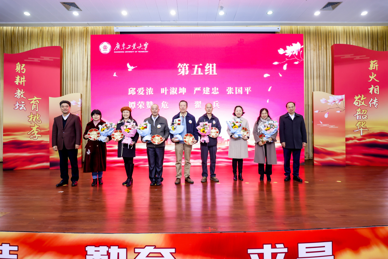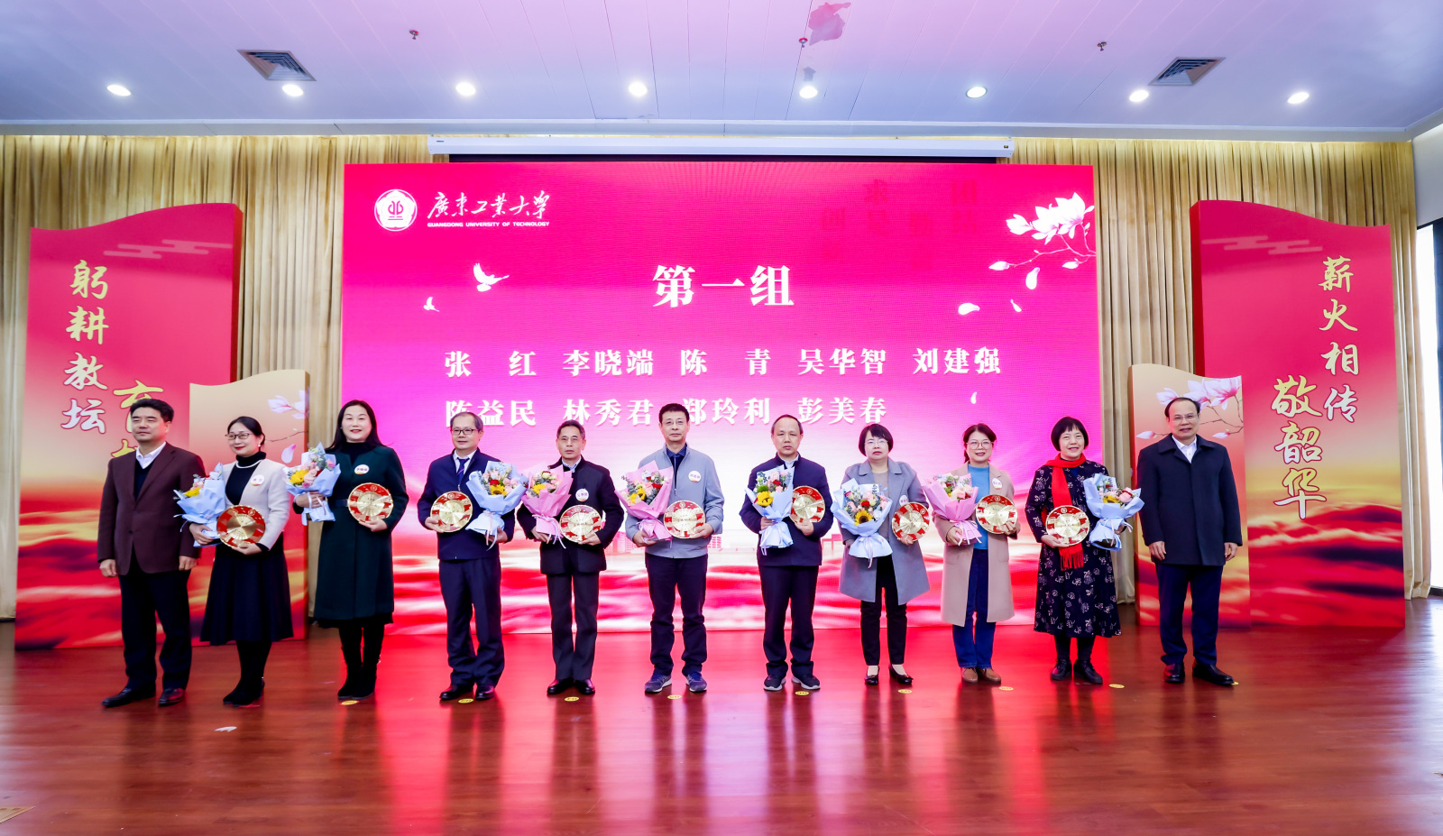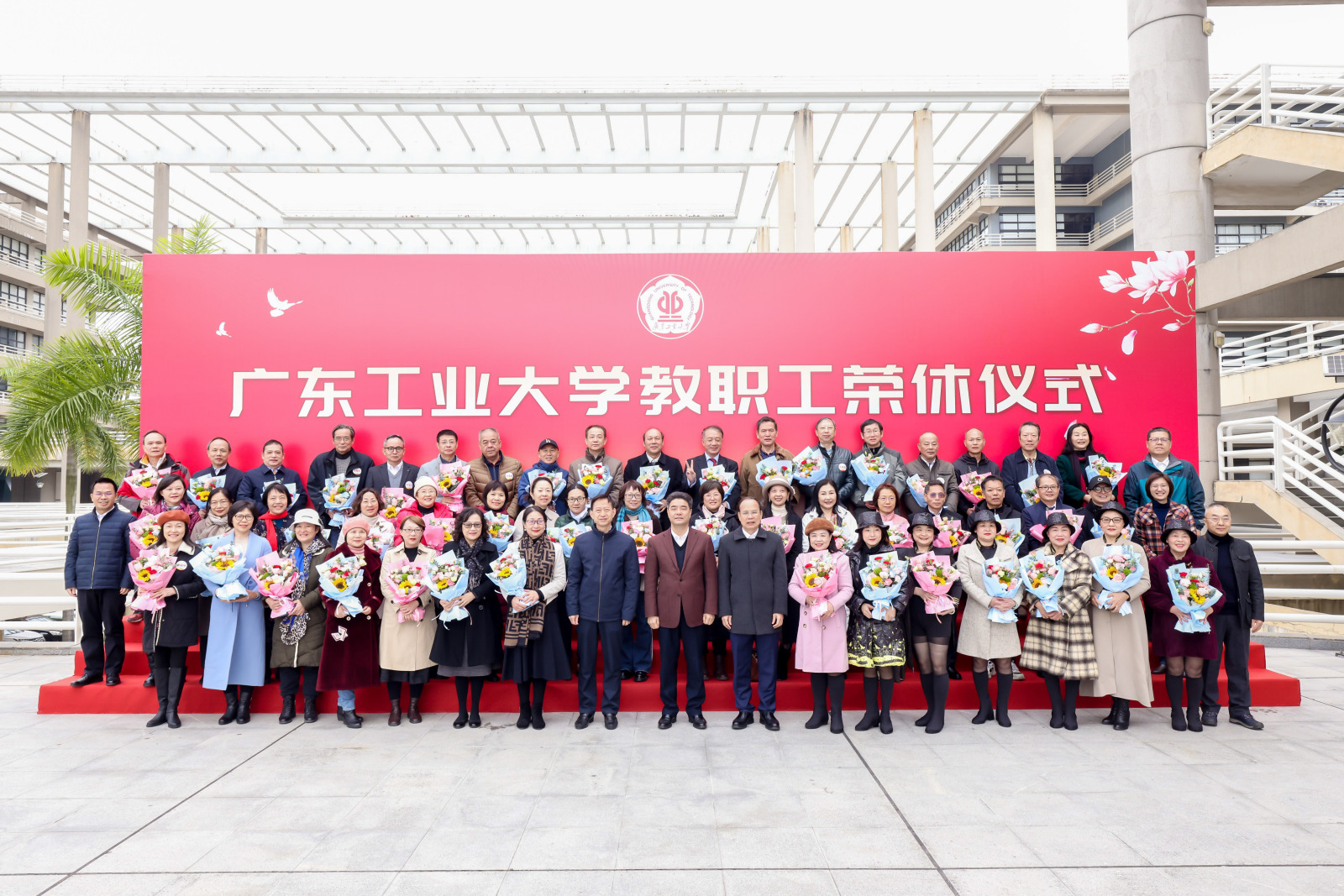 致敬芳华,感恩有您。2023年2月至2023年12月,学校共有120位教职工光荣退休。胡钦太、邱学青为荣休教职工代表颁发纪念牌,学生代表向荣休老师献花。