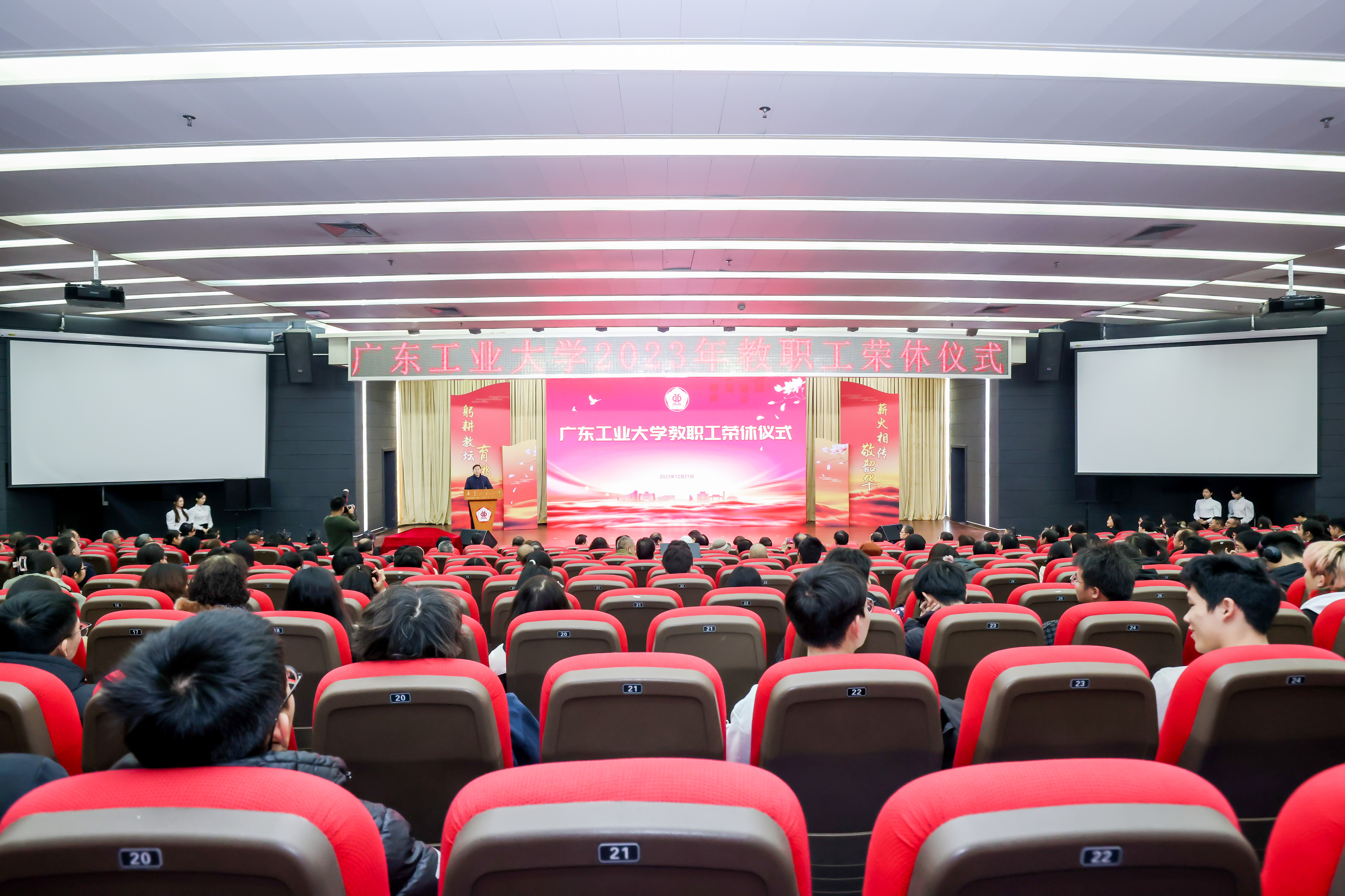 岁月映初心,韶华铸师魂。为健全教师荣誉体系,营造尊师重教、崇尚师德、传承师道的良好氛围,表达对退休教职工的崇高敬意和衷心感谢,12月21日上午,学校在大学城校区大讲堂三楼报告厅隆重举行教职工荣休仪式。校党委书记胡钦太,校党委副书记、校长邱学青,荣休教职工代表,相关职能部门和二级党组织主要负责人,在职教师代表及学生代表共400余人出席。荣休仪式由校党委副书记陈良友主持。