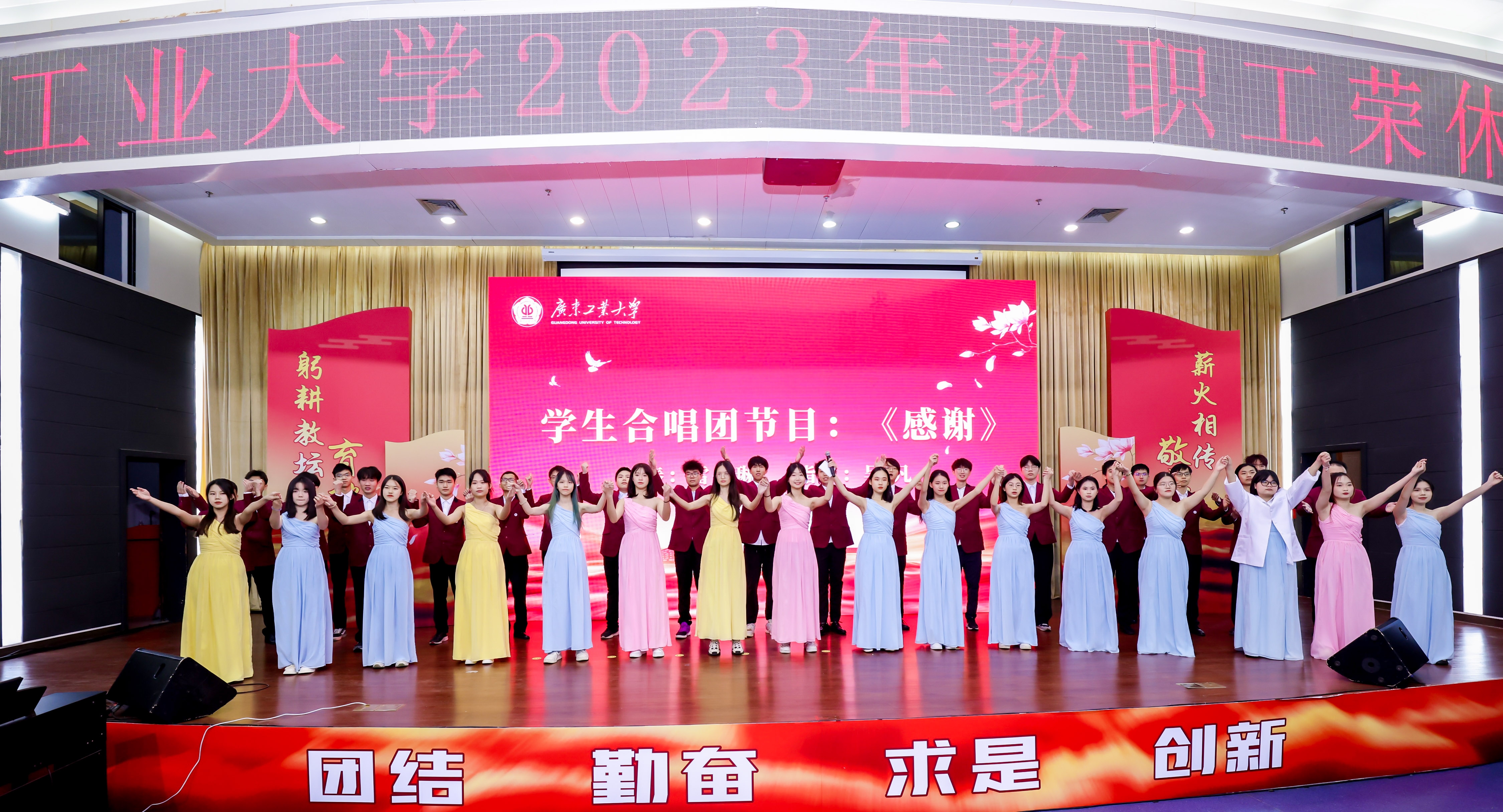 学生合唱团倾情献唱歌曲《感谢》,用动人的歌声表达对老师们的感恩之情。三寸粉笔,三尺讲台系国运;一颗丹心,一生秉烛铸民魂。老师们以“躬耕教坛,强国有我”的精神,把全部精力和满腔真情献给党的教育事业,一声声“感谢”传递着学生的难忘师恩,也表达了对老师们的深情祝福!