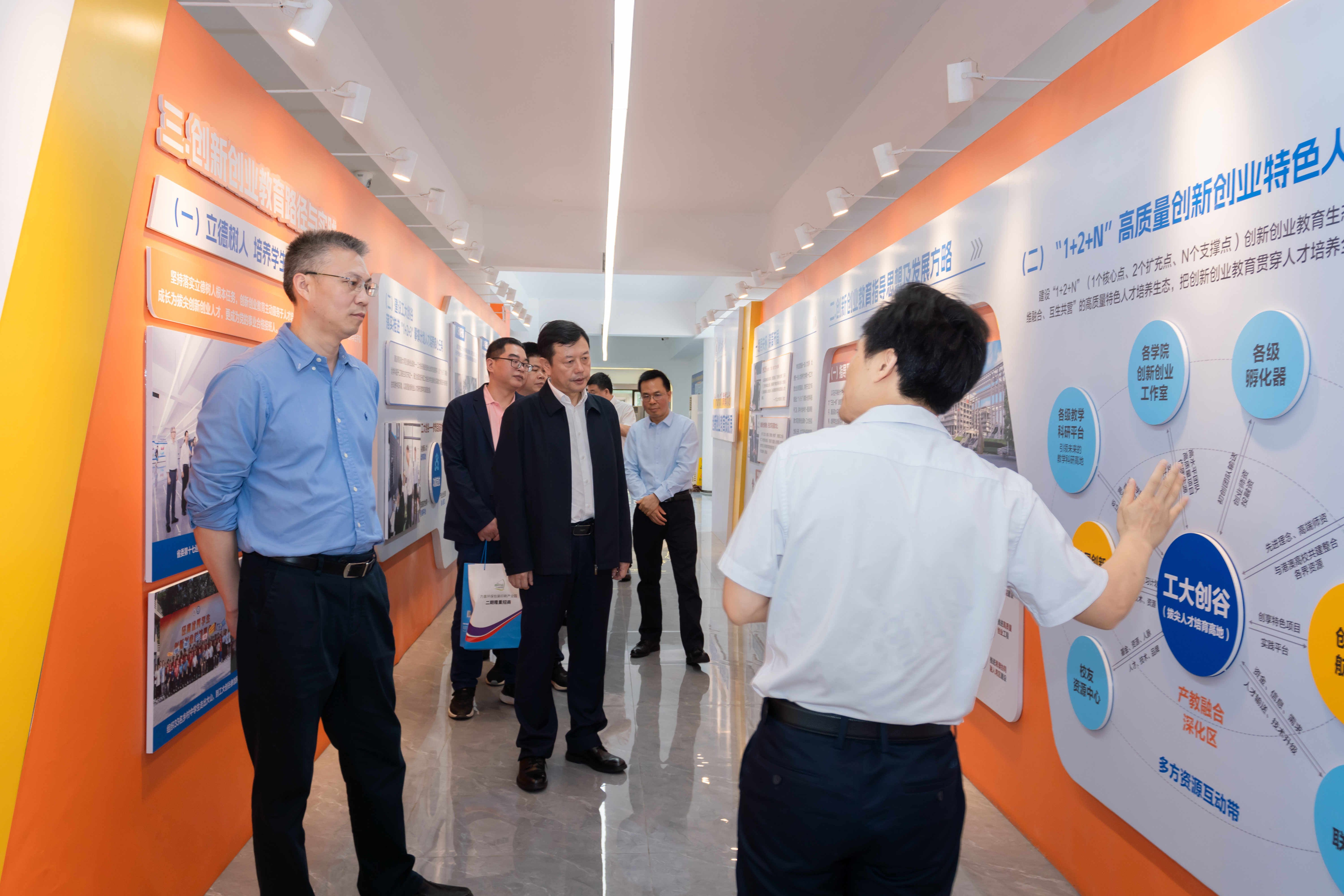 会后,蒋昌波一行在学校党委常委、副校级干部张学理的陪同下到国家级创新创业教育实践基地——工大创谷参观。