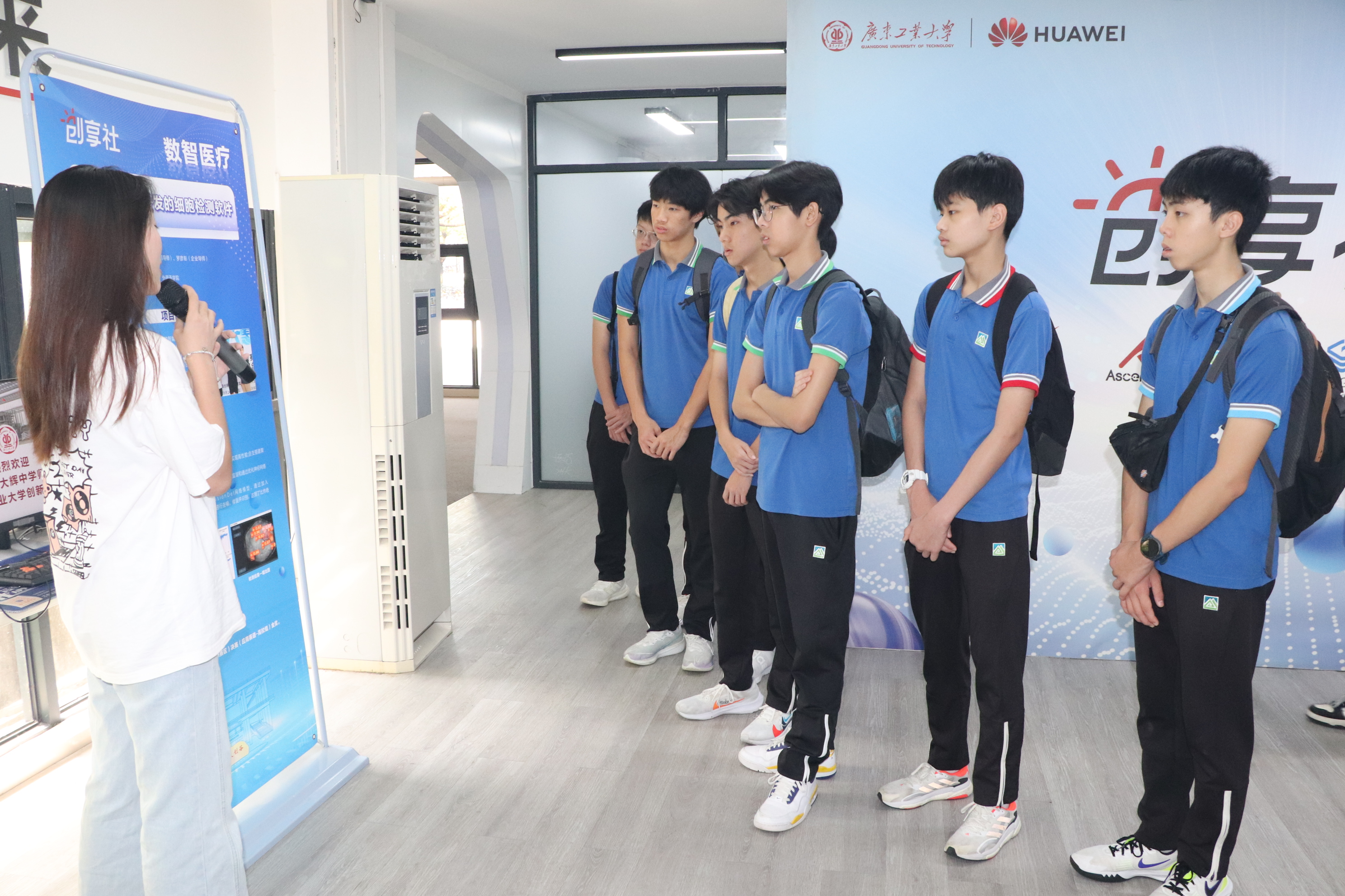 在国家级创新创业教育实践基地-工大创谷,中学生们实地参观了拔尖创新人才培育区、创享创新班、创业苗圃、米兰在线登录-华为鲲鹏&昇腾开发者创享社等区域,并与大学生热烈交流互动,近距离观摩大学生科创项目和成果,体验硬科技和黑科技,深入了解国有自主技术的快速发展和广泛应用,切身感受“兴趣驱动、学科交叉、跨界融合”的创新创业良好氛围。