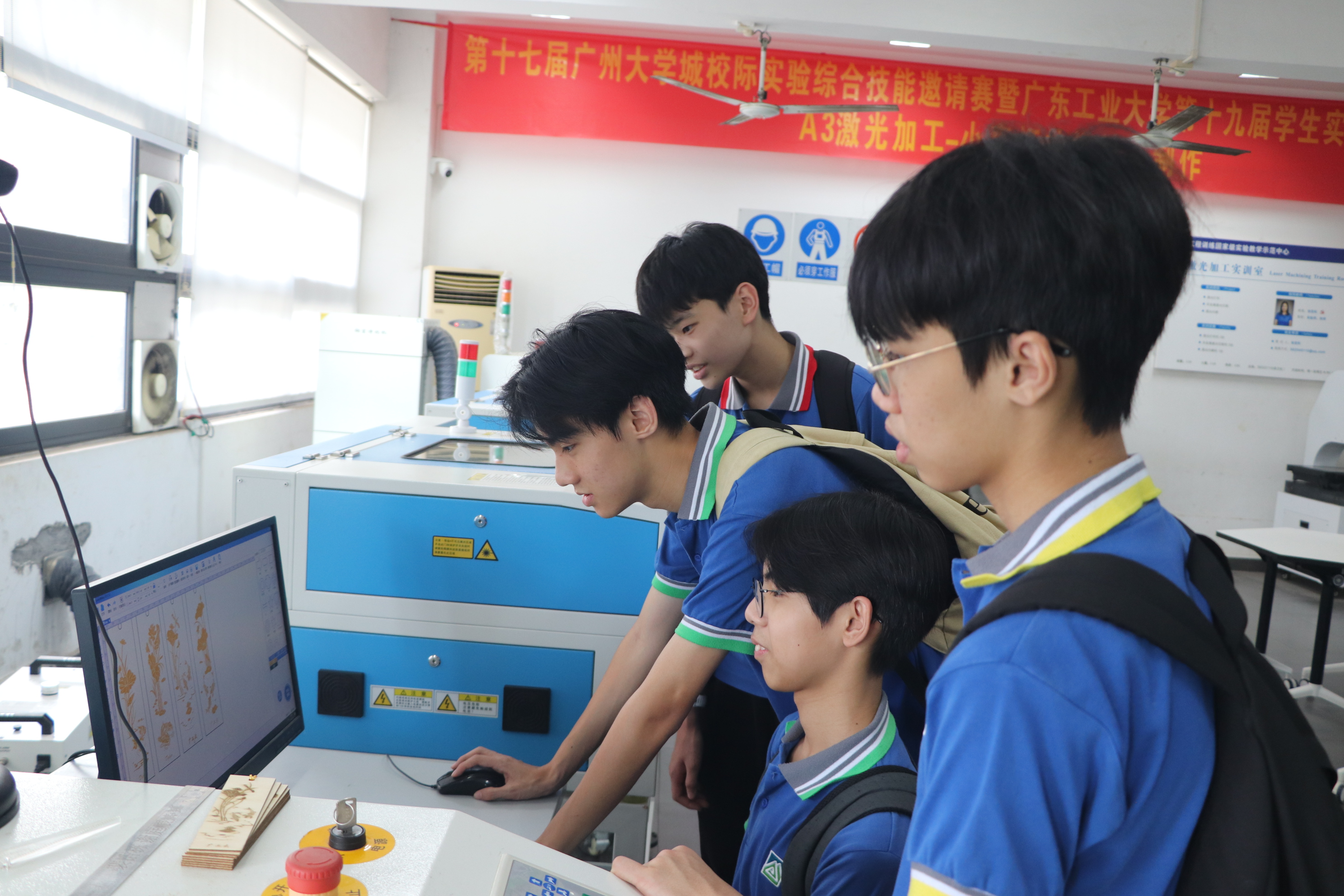 在国家级实验教学示范中心——工程训练中心,中学生们走进VR+AI技术、激光加工等实训室,认识了VR(虚拟现实)和AI(人工智能)技术、3D打印技术、金属及非金属激光切割机等先进制造设备,兴致勃勃地带上VR眼镜,沉浸式地体验了机床组装项目;在老师的讲解和指导下,亲自操作激光加工设备,制作具有纪念意义的个性化书签和工艺卡片,体验从设计到成型的全过程,不仅了解了激光切割机和激光雕刻机的基本操作和维护方法,更学会了参数调整、工艺优化,践行知行合一。