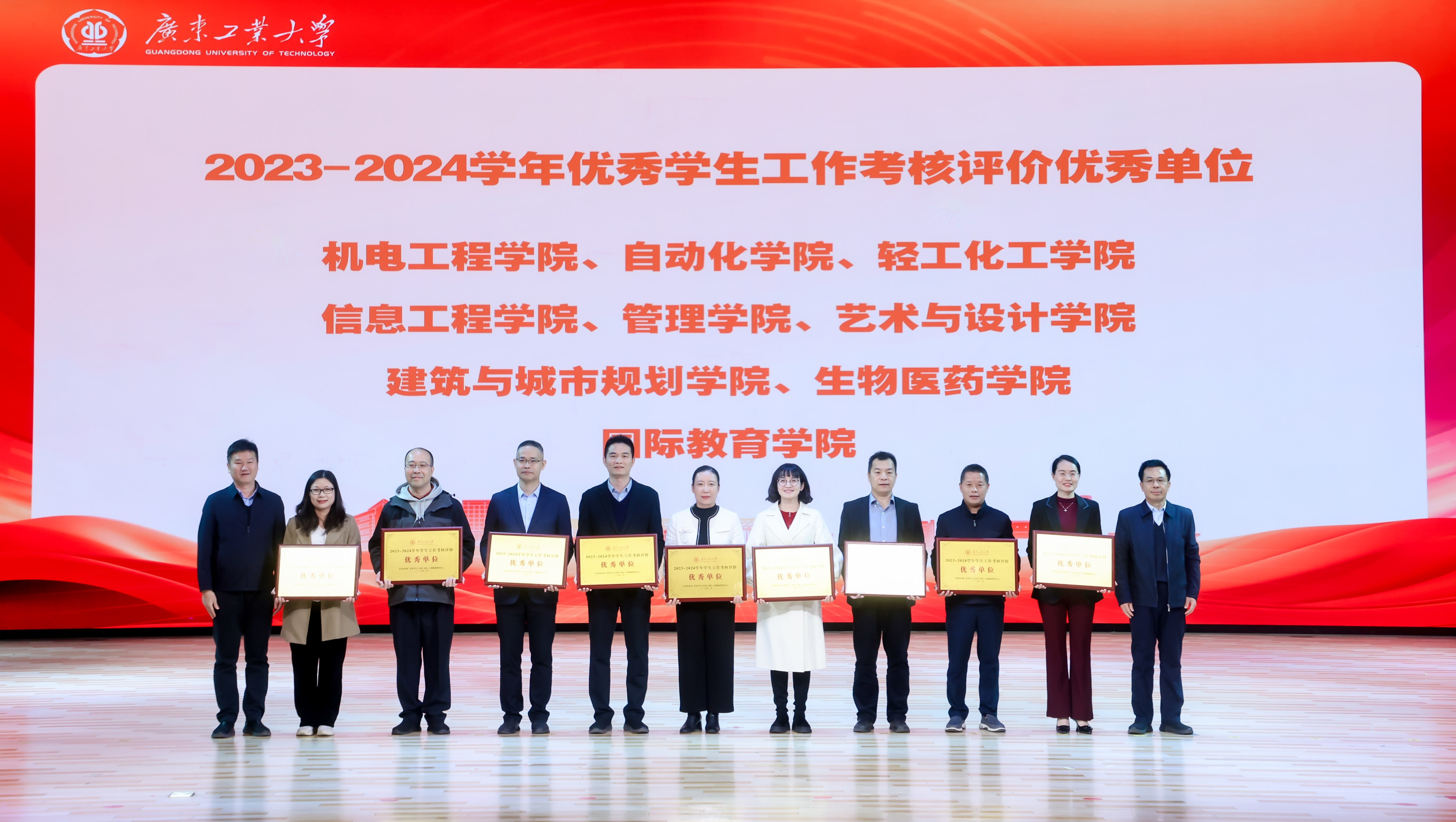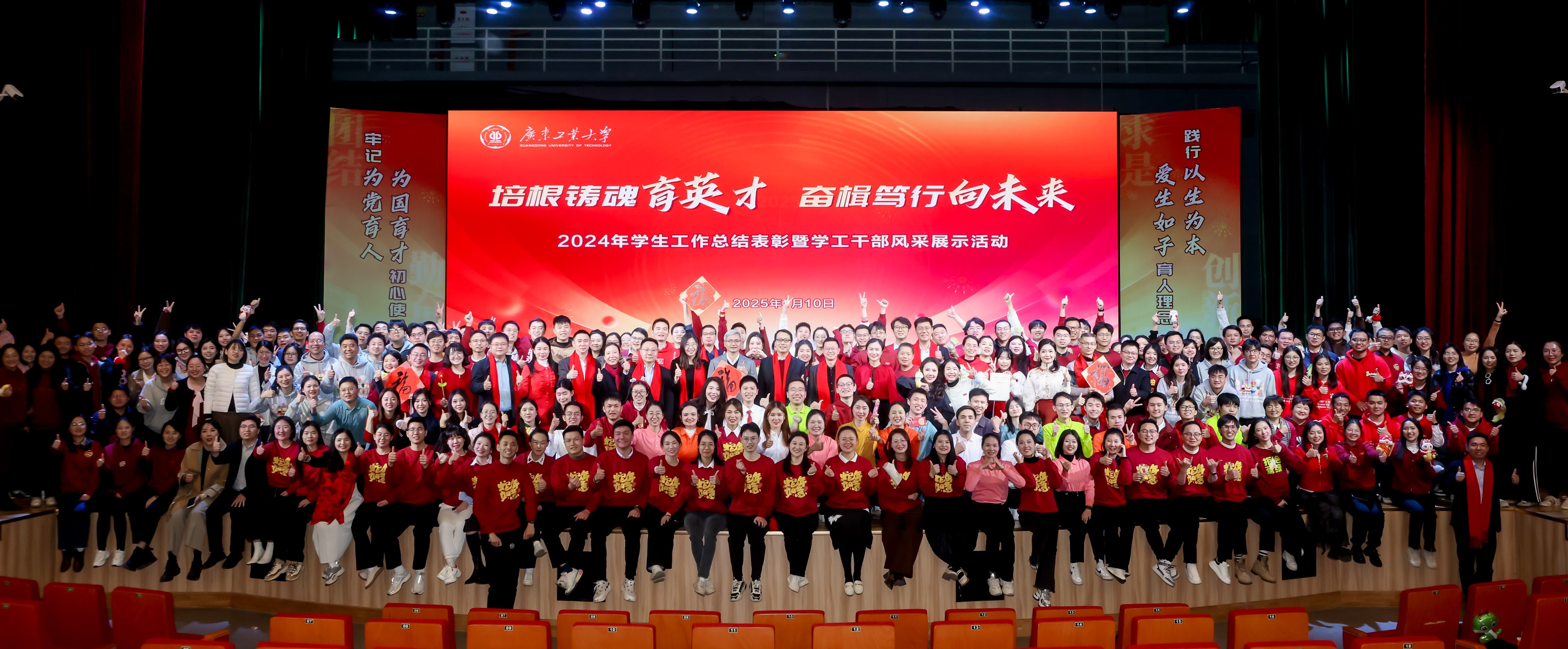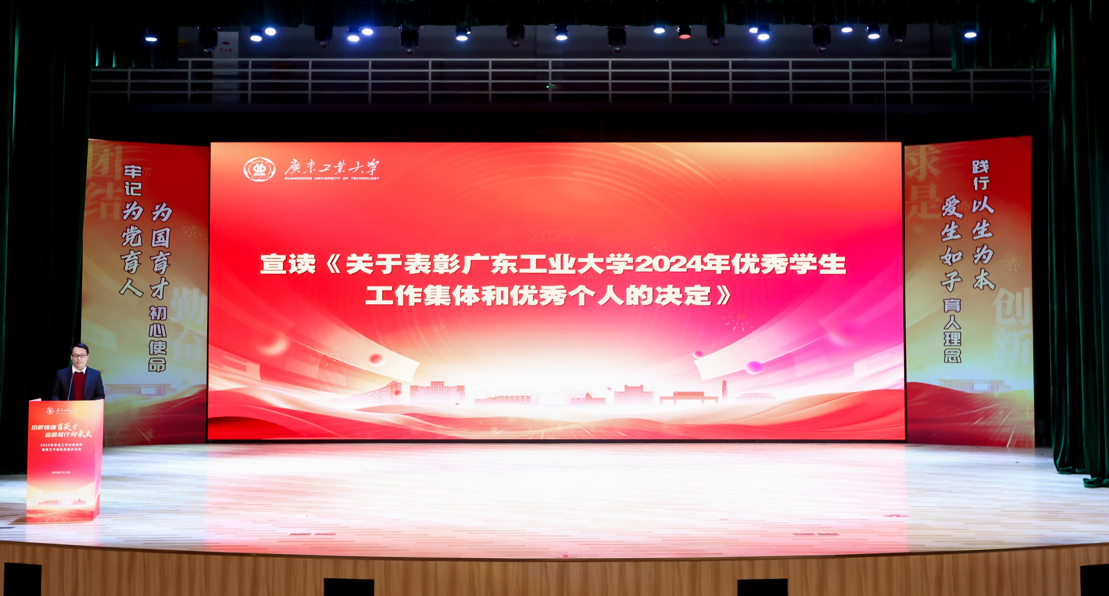 为总结展示2024年学生工作育人成果,表彰优秀学生工作集体及个人,进一步增强学工干部职业归属感与队伍凝聚力,1月10日,学校在大学城校区文化活动中心演艺厅举行“培根铸魂育英才 奋楫笃行向未来”——2024年学生工作总结表彰暨学工干部风采展示活动。校党委副书记陈卓武,党委常委、宣传部部长张育广出席活动,党委办公室、校长办公室、党委学生工作部、研究生院、人事处、保卫处、总务部、心理健康教育中心、校工会、校团委、对外联络与校友事务办公室等单位主要负责人,学工部、心理健康教育中心、校团委全体工作人员,各学院党委书记或专职副书记,全体辅导员参加活动。