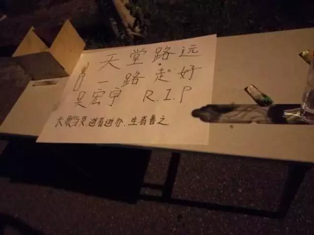 事发两天后,也就是2016年5月25日傍晚7点,事发地点附近举行了吴宏宇同学的追思会,近2000名师生自发前往。