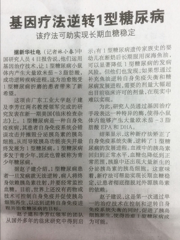 下一条:南方日报|基因疗法有望治愈儿童糖尿病