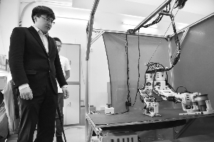 黄之峰团队双足机器人能跨过45厘米宽的空隙。 信息时报记者 朱元斌 摄
